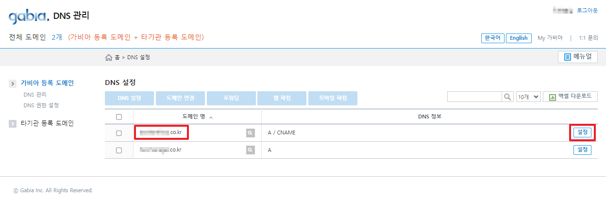 ① 가비아(도메인 구매 사이트) DNS 관리