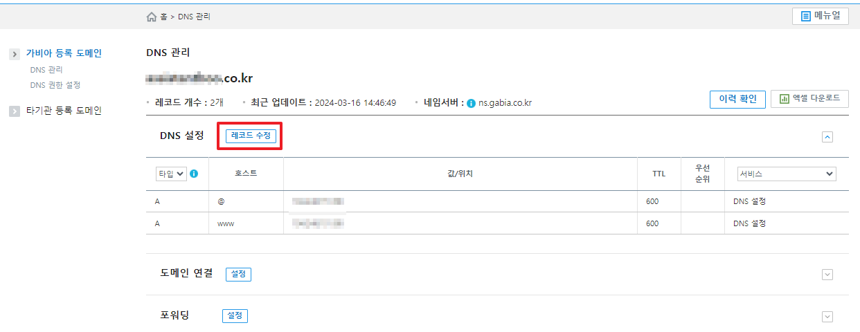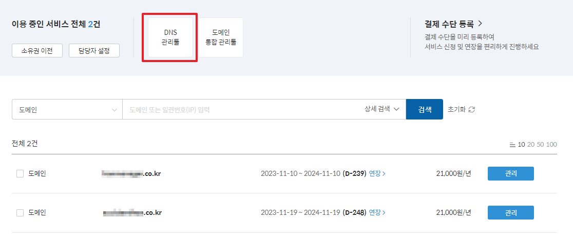 'DNS 관리툴'을 클릭하여 들어갑니다.