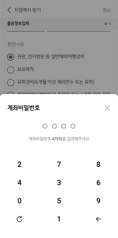 출금정보입력 란에서 '환전사유' 와 '출금계좌' 를 선택해 주고 다음으로 넘어갑니다.