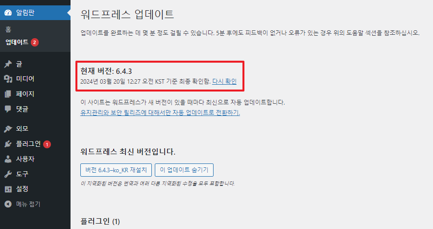 워드프레스의 버전을 확인해 줍니다.