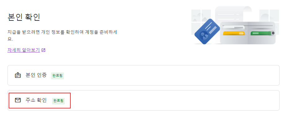 지난 시간, 본인 인증과 세금 정보 입력을 통해 주소를 다시 한 번 입력해 주었습니다.