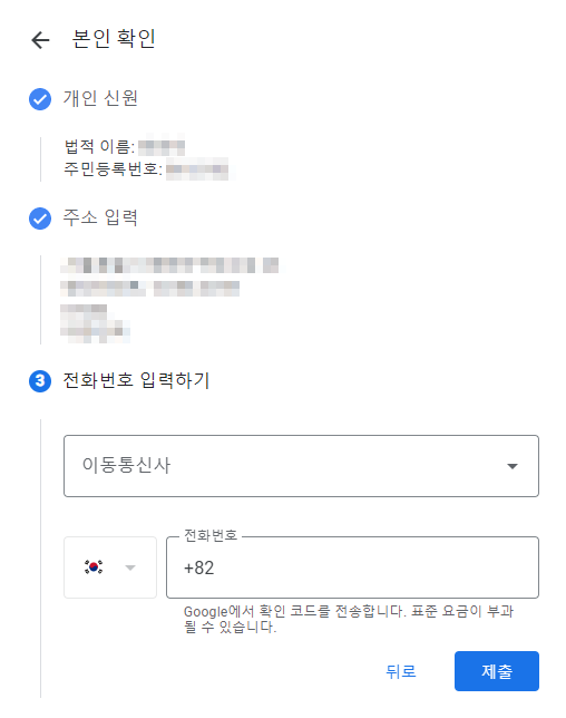 입력하고 '제출'을 눌러줍니다.