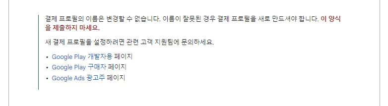 위에서 잠깐 언급했던 애드센스 계정 이름과 법적 이름이 일치하지 않음에 문제가 발생했습니다.