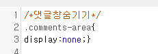 댓글창을 숨기는 CSS 코드를 입력하여 댓글창을 숨길 수 있습니다.