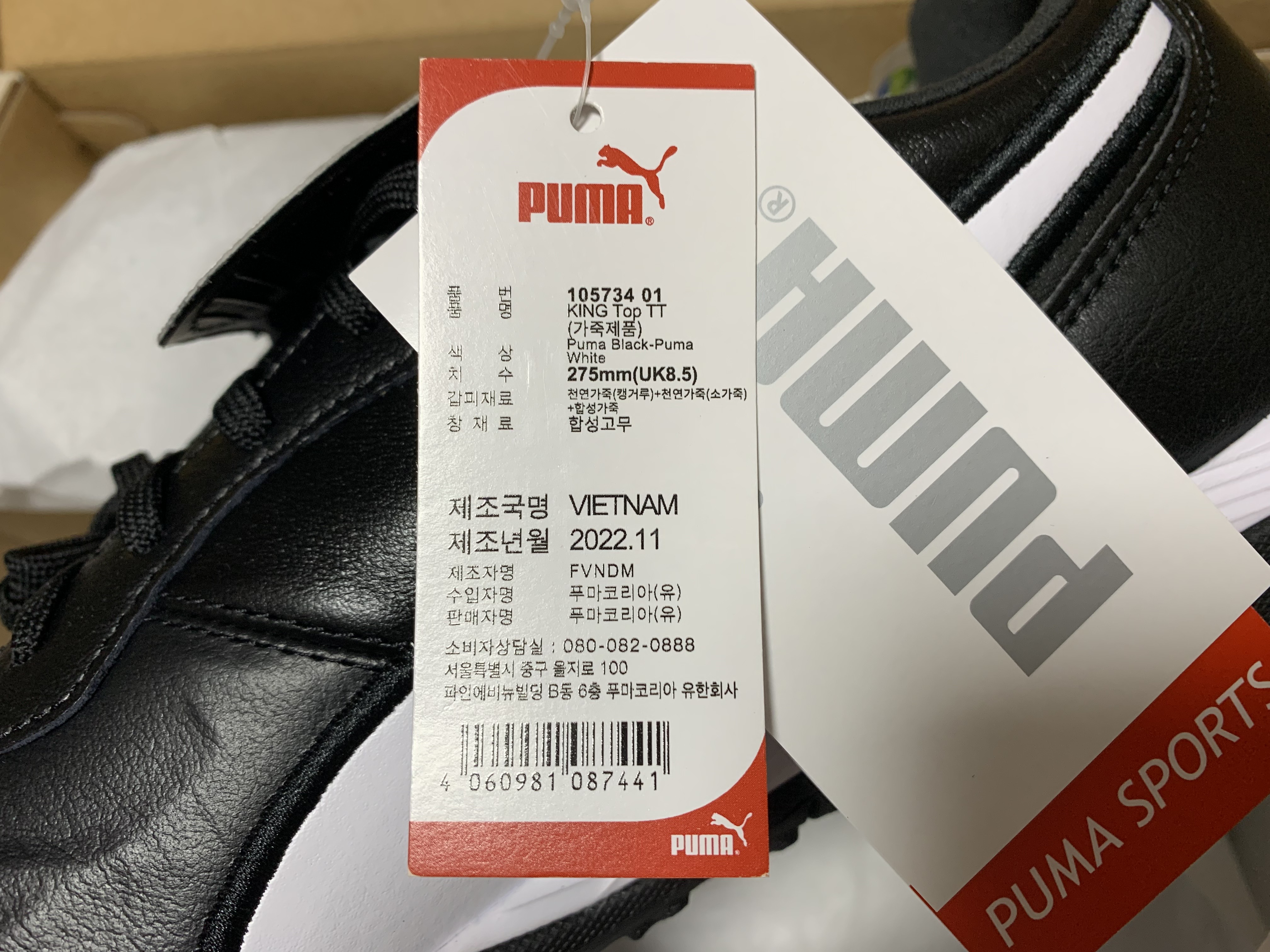 그 당시 사진찍어둔 것 공유하며 푸마 풋살화 킹 탑 TT 디테일을 봐보겠습니다.